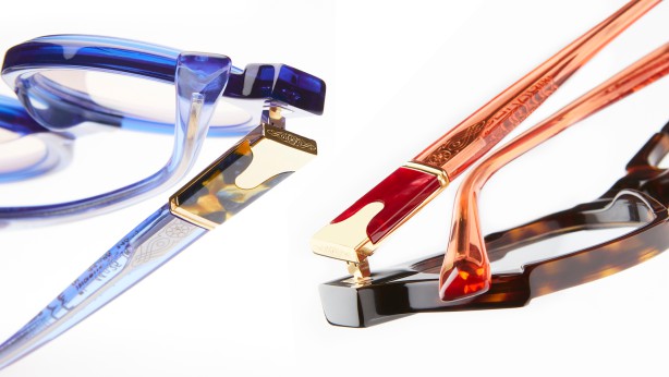 Le maschere Kuboraum della serie S sono pezzi eleganti con un design visivamente intrigante. I materiali colorati utilizzati nella tradizionale produzione manuale delle penne per calligrafia si fondono con le aste in acetato traslucido e metallo artigianale e sono completate da filigrana e ornamenti curvilinei su scala microscopica.